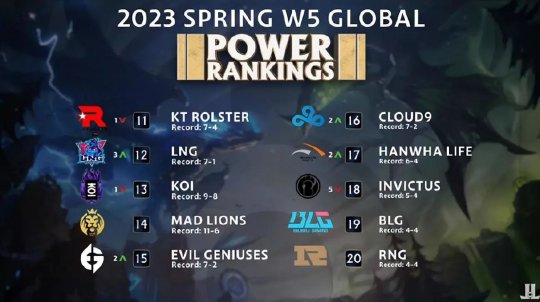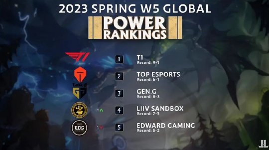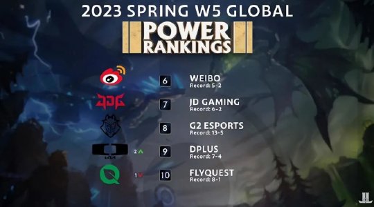 2023《英雄联盟》春季赛第5周全球战队排行榜TOP 20: