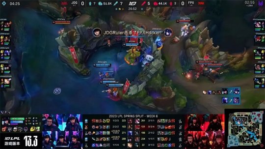 2023 LPL春季赛常规赛第六周第三日,JDG战队对阵FPX战队,两队无论是选手个人实力还是团队配合程度都有着较大的差距,JDG战队凭借出色的对线实力早早滚起雪球,更是在第二局14分钟就取得一万经济领先,以摧枯拉朽之势2-0横扫FPX拿下胜利。