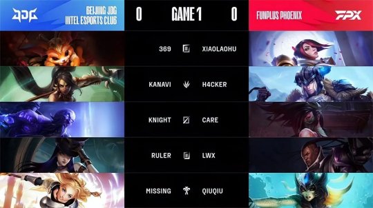 休整完毕以后JDG开始整理兵线,瑞兹尝试在中路单杀剑姬,豹女绕后想要配合结果被FPX反包围阵亡,JDG稳住阵脚调整以后抱团再次攻入高地,剑姬在上路拆掉高地塔,瑞兹回防清线以后立刻TP与队友汇合,JDG强势发动进攻击溃FPX一波结束了比赛,先下一城1-0暂时领先!