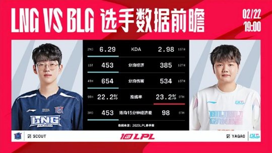 LPL春季赛常规赛正在如火如荼地进行中,2月22日的两场比赛分别是JDG vs FPX和LNG vs BLG,第一场两队的实力差距悬殊,JDG拿下FPX问题不大;第二场相当而言更为焦灼,BLG在选手实力和队伍近期状态方面不输LNG,而LNG只要平稳过渡到中后期胜算更大。