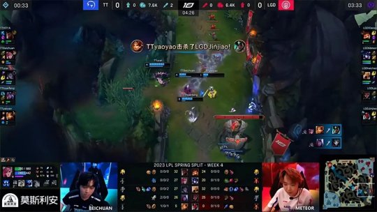 2023 LPL春季赛常规赛第四周第六天第一场比赛,TT战队对阵LGD战队,凭借中野在前中期出色的节奏带动,TT高歌猛进连下两城2-0横扫了LGD拿到三连胜。
