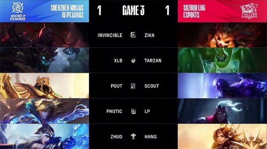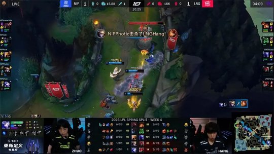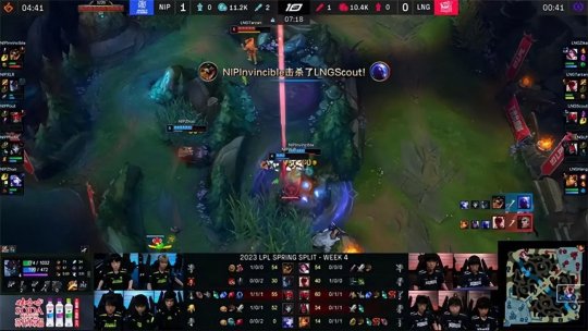 2023LPL春季赛常规赛第四周第七日,NIP战队对阵LNG战队,此前战绩4胜0负的LNG战队是目前全球赛区唯一一支保持不败的队伍,然而在面对NIP的比赛里他们陷入了空前激烈的苦战之中,连败的NIP为了争夺胜利全体齐心协力,最终在决胜局凭借Poke体系的默契配合拿下比赛胜利,2-1终结了LNG的不败金身。