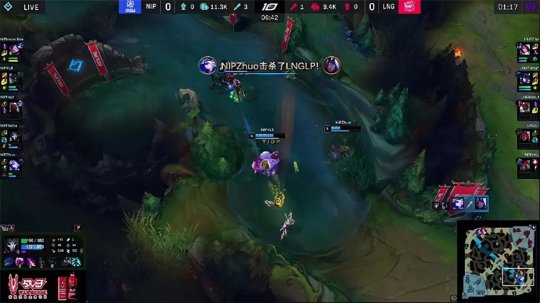 两队前期虽然频繁交手但一直没能爆发人头,直到将近10分钟的时候艾希升六瞬间突然发起先手,大树跟上控制帮助队友将韦鲁斯曙光击杀。艾希手感火热连续通过大招精准先手帮助队伍扩大优势,甚至从下路一箭射中了上路河道的纳尔,赛恩沙皇跟进输出将其击杀。LNG通过在边路展开攻势来弥补之前的落后,小龙团战里NIP虽然击杀了小龙却决定卖掉进场的赛恩后撤,浪费了较好的团战机会,接下来LNG继续通过扎克的先手发起突袭,带给NIP脆弱的后排很大威胁,从而获取了正面团战的主动权,将经济反超领先。