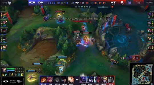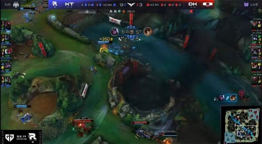 中期DK在小龙河道抓死了探视野的猪妹,果断抱团开大龙,失去了打野的KT无力抢大龙,上、中留人不成双双阵亡。DK带领大龙buff兵线拆了中路二塔,又在大龙河道打出2换4,“听牌”了海克斯龙魂之后滚起了5千的经济雪球。KT在自家上半野区和大龙坑的视野严重缺失,DK得以无压力控下大龙,付出贾克斯一人的代价推掉KT中路高地塔,局面一片大好。最终DK稳稳地解锁了海克斯龙魂,各个击破打出0换5团灭KT一波结束比赛,稳扎稳打1-0先下一城!
