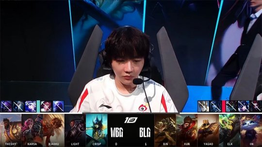 WBG在野区努力阻止BLG的入侵,尝试先手集火发育最好的千珏,但千珏还是开出了羊灵生息避免了被秒,BLG援军迅速到位打出0换3击溃WBG以后收下大龙Buff。面对接踵而来的高地攻势,酒桶绕后找到机会炸到了没闪没大的千珏,接上纳尔的控制终于将其击杀阻止了千珏超神。但WBG也没有了继续作战的能力,只能将海克斯龙魂白白放给了BLG。BLG稳健运营蚕食掉两路高地,转身拿到第二条大龙再回家补满状态以后才发动最后的进攻,在一万二的经济差距面前WBG完全无力抵挡BLG的爆炸输出,BLG轻松击溃WBG一波结束了比赛,强势地拿下了第一局比赛的胜利。