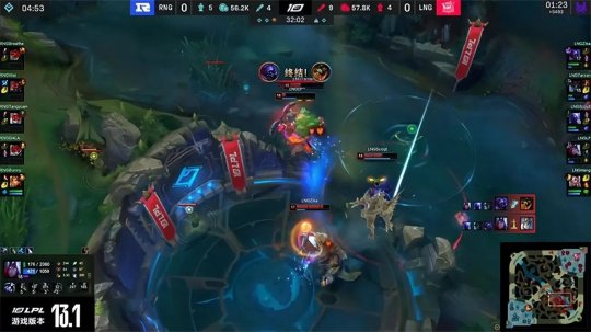 RNG在听牌龙团战里通过完美的团战配合斩杀两人击溃了LNG,给LNG施加了很大的资源压力。LNG收缩防御通过分推等待机会,武器大师在下路单带吸引了RNG的注意力,加里奥和吉格斯草率交掉关键技能支援下路无果而终,导致LNG获得了Rush大龙的绝佳机会,RNG无奈只能放弃大龙转而争夺下半区的海克斯龙魂。两队在河道一触即发爆发团战互换了辅助人头,位置更好的LNG想要拿下小龙,RNG在状态不佳的情况下强行进场想要夺取龙魂,结果韦鲁斯锁血输出收割了战局,LNG斩杀四人以后中路一波强拆结束了比赛,先拔头筹1-0领先!