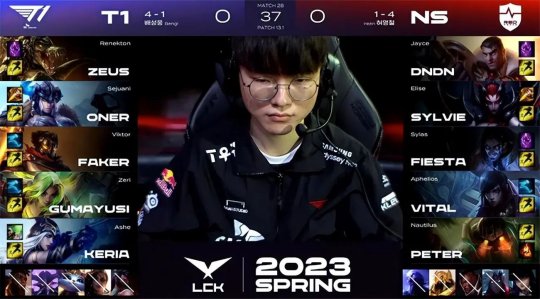 北京时间2月4日,2023LCK春季赛第三周星期六晚上的比赛由积分1-4的NS农心战队直面4-1的T1战队。第一局Keria的艾希大招百发百中,不过第二局他的老鼠“科研失败”,最终T1有惊无险2-1战胜NS!