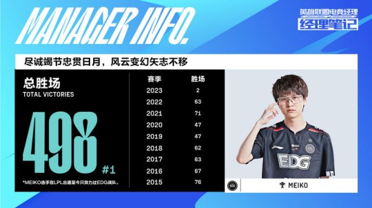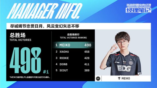 LPL春季赛即将打响,赛前官方放出了LPL总胜场排行,Meiko总胜场498位列第一,Xiaohu总胜场458位列第二。