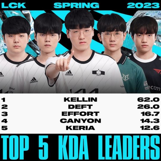 今日LOL官推发布了LCK春季赛首周的KDA排行:其中DK辅助Kellin以62的KDA高居榜首,队友Deft和Canyon也赫然在列。