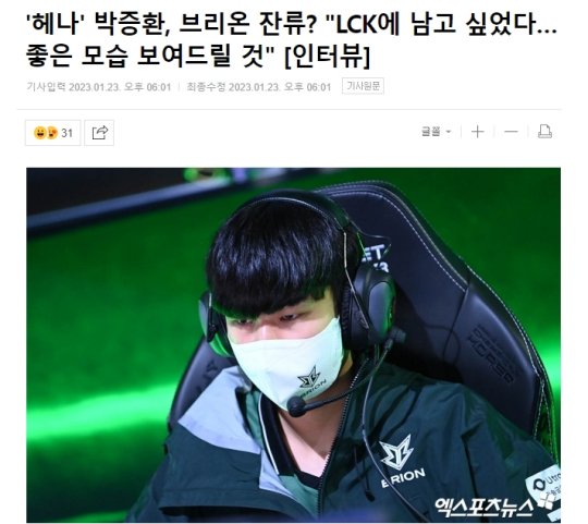 LCK春季赛BRO以2-1的比分战胜KDF,赛后下路选手Hena接受了韩媒Daily Esports的采访。