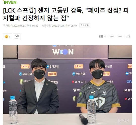 LCK春季赛GEN以2-0的比分横扫了DRX,赛后监督Score和下路选手Peyz接受了韩媒Inven Global的采访。