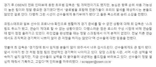 BRO以2比0的比分战胜NS,确诊新冠的BRO.Edgar监督接受了韩媒OSEN的电话采访。