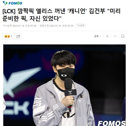 对于和前队友deokdam选手交手,Canyon选手传达了感想,“比赛内是对手,所以没有什么想法。我集中于比赛。”