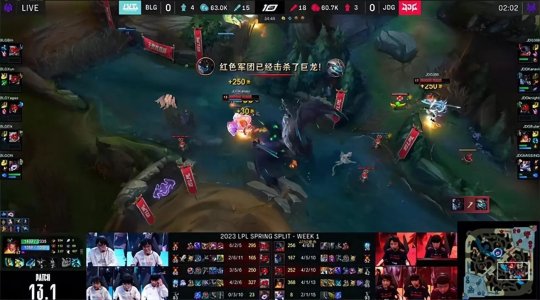 2023 LPL春季赛常规赛于1月14日正式鸣锣开战!第一周首日的第三场比赛是由卫冕联赛冠军JDG战队对阵BLG,两队纸面实力非常豪华,带来了一场棋逢对手的强强对话,JDG凭借强大的团战配合先下一城以后,BLG在第二局通过Bin的个人能力打穿上路扳平比分,最终决胜局里两队剑拔弩张打满50分钟,初登LPL赛场的Ruler砍下2023LPL春季赛的首个五杀,JDG 2-1击败BLG赢取首胜!