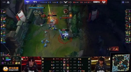 开局蜘蛛刷到3级直接gank上路,虽然Zeus的纳尔交了闪现,在塔下闪转腾挪苦苦挣扎,但GEN上野还是依靠蜘蛛的飞天拿到一血并全身而退。