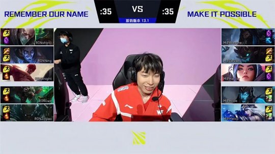 派克又一次被MIP击杀,此时比赛刚刚来到20分钟,MIP众人立刻动手开打大龙,塞拉斯拼死冲进龙坑抢龙失败阵亡,随后艾希闪现万箭齐发留人,配合队友收掉了RON双C的人头,RON兵败如山倒,全盘崩溃陷入了劣势。不过他们没有因此而收缩防御,面对MIP的进攻选择正面硬刚,不断在团战里遭受重创。28分钟左右MIP开打第二条大龙,RON无所畏惧再度全员冲脸尝试阻挠,因为装备的悬殊差距被MIP 0换5团灭,最终MIP趁势推掉基地,赢下了第一局比赛!