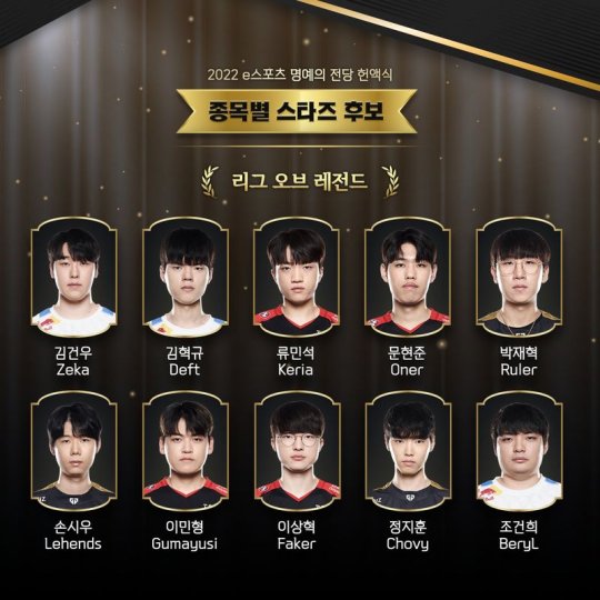 英雄联盟:Zeka、Deft、Keria、Oner、Ruler、Lehends、Gumayusi、Faker、Chovy、BeryL、Zeus、Doran、Peanut、Pyosik、Kingen