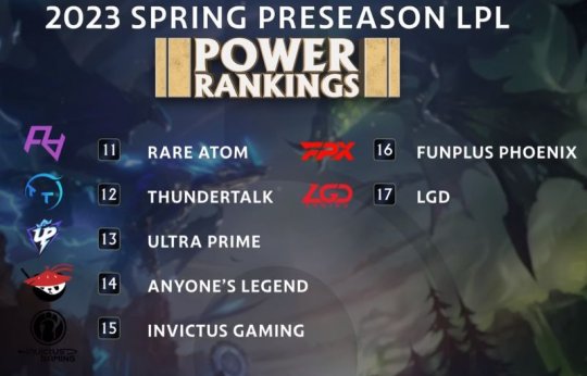 近日外媒LeagueOnLock在**频道发布了2023年LPL春季赛战队排名: