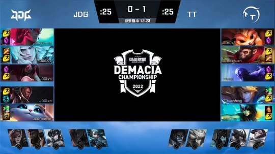 2022德玛西亚杯八强赛最后一场对决由TT战队对阵JDG战队,TT战队在新赛季引入S10亚军下路Huanfeng以后以全主力阵容出战德杯,而JDG战队派出了一套二队阵容,结果在完全体TT的面前毫无招架之力,连续三局被TT大比分碾压,最终TT 3-0轻取JDG顺利挺进四强。