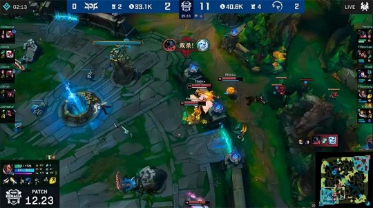 TT先后在地图三个位置找到机会抓死JDG的三C,开始尝试Rush大龙,JDG不顾一切强行突进过来阻挠TT拿龙,虽然打出2换3但大龙Buff还是被TT收入了囊中。接下来TT继续利用团队优势展开推进,步步蚕食推掉了下路高地,随后开团击杀JDG三人,纳尔回城以后TP保线带领队伍最终推平基地,恭喜TT再下一城,2-0领先手握赛点!