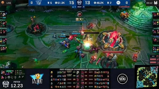 EDG众人势不可挡推进高地,凭借压倒性的伤害斩杀MOJ三人以后破掉两路高地,瓦解了MOJ的抵抗结束比赛,恭喜EDG再下一城,2-1领先MOJ并且手握赛点。