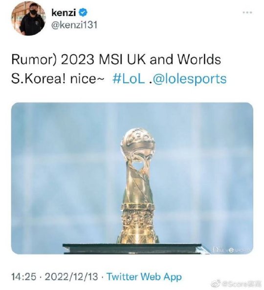 韩媒Kenzi爆料:2023MSI和S13分别在英国和韩国举办