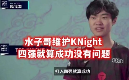 在Knight确定离队之后,JackeyLove在直播中也谈到了四强梗,水子哥直言,过去两年了,自己也不觉得打进四强有什么问题,第一次打进世界赛,目标四强就算成功,本身就没有什么问题,有一说一,四强的成绩并不差,只不过当时的Knight是夏冠FMVP,算得上LPL的代表人物,但这句发言确实显得有些猥琐了。