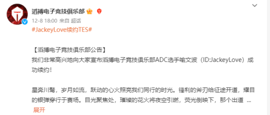 随着12月进入中旬,LPL转会期也仅剩下了四天的时间,部分战队已经陆续官宣了战队选手动向,TES在12月9日,宣布中单Knight离队,前往JDG征战S13,已经成了既定的事实,而小天和JackeyLove前后完成签约,Rookie也正式加盟TES,这支战队的阵容已经初具雏形,三个世界冠军,再加上Wayward和Mark,一同冲击新赛季。