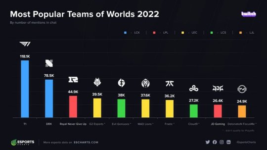 今日外媒Esports Charts分享了世界赛期间最受到观众欢迎的战队排名,其中T1分别在收视率和受欢迎度上占据第一宝座,RNG成功进入前三位置。