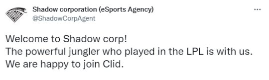 今日韩国知名选手经济公司Shadow(非常多选手的经纪公司,主要往外赛区输送LCK选手)更推:欢迎来到Shadow公司!