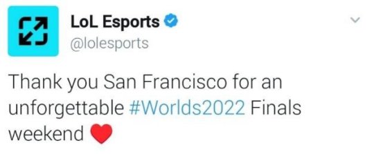 今日LOL官方推特发文告别S12,原文大意如下:感谢旧金山让我们度过了一个难忘的决赛周!