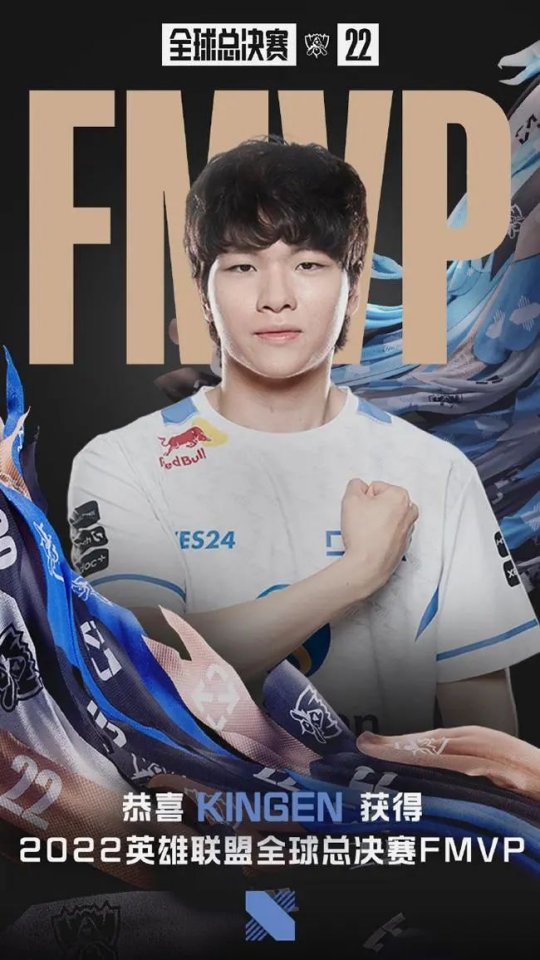 在北京时间11月6日的2022全球总决赛冠亚军决赛中,DRX以3-2击败T1问鼎S12冠军,成为S赛史上第十支冠军战队!DRX上单Kingen荣膺FMVP,成为S赛自S4世界赛增加FMVP奖项后,第二位获得该殊荣的上单选手!