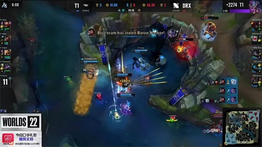 北京时间11月6日,2022英雄联盟全球总决赛冠亚决赛在美国旧金山大通球馆正式打响!由Faker带领的全球总决赛三冠王T1迎战由Deft带领的以黑马之姿逆袭杀入决赛的四号种子DRX。DRX在首局失利以后在第二局通过顽强的团战有惊无险扳回一城,让双方回到平手,接下来的第三局事关赛点归属至关重要,T1在对线期取得优势的情况下被DRX的团战操作一度压制住节奏,但男枪的关键抢龙帮助T1扭转了局势,双方在后续展开了空前惨烈的团战对弈,韦鲁斯再度抢到大龙带领T1有惊无险拿下了比赛胜利,T1 2-1领先手握冠军点!