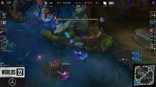 2022英雄联盟全球总决赛冠亚决赛T1对阵DRX的决胜局,两队即将带来2022赛季最重要最关键的最后一舞!在如此意义重大的对局中,LCK四号种子DRX作为挑战者大胆选出了比较罕见的巴德辅助,两队都获得了完美的BP评分,这一战注定要载入英雄联盟赛事的史册。T1身为LCK春季赛冠军与MSI亚军以及S赛三冠王得主,决赛里一开始的气势明显要盖过DRX,但DRX的黑马韧性依然在不断创造奇迹,两度落后两度扳平比分,硬生生将决赛拖入最终决胜局。在事关生死的决胜局里DRX依然韧性拉满,最终惊险地以下克上击败了T1,3-2夺得2022英雄联盟全球总决赛冠军!恭喜DRX创造黑马奇迹!