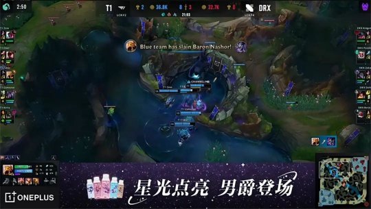 大势已去的DRX只能努力抱团尝试抵挡T1的推进,虽然找到机会集火秒掉了永恩和烈娜塔但难以挽回比赛。T1稳扎稳打推掉上中两路以后在27分钟拿下第二条大龙,DRX连靠近龙坑的勇气都已经消失,T1顺势带领下路兵线推掉了最后一路高地。回城稍作补给以后T1拿到水龙魂发起最终攻势,DRX众将背靠门牙竭力清兵但终究无济于事,T1势不可挡拆掉基地拿下比赛胜利,1-0领先取得决赛开门红!