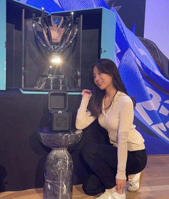 LCK主持志宣晒召唤师杯合照 全新的S赛奖杯