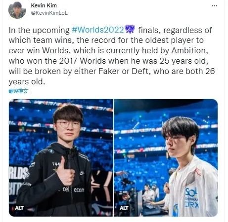 外媒记者Kevin Kim发布S12世界赛一则TMI,大概意思是今年S12决赛将打破由SSG.Ambition保持的最大年龄夺冠记录,推文大意如下: