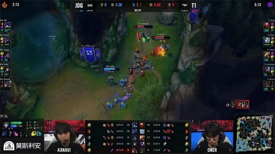 2022英雄联盟全球总决赛半决赛首场对决由LPL冠军JDG战队对上全球总决赛三冠王T1战队!胜者将获得第一张晋级S12决赛的门票。T1战队在先负一局的情况下凭借全员神勇的发挥连追三局,让一追三3-1淘汰了LPL的最后希望JDG战队,时隔五年再度杀入全球总决赛冠亚决赛。LCK赛区即将在决赛上演内战,提前锁定了S12冠军荣誉。
