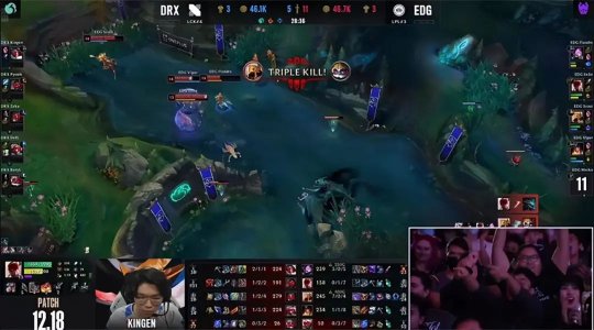 中期DRX掩护第二只峡谷先锋推掉中路二塔,EDG在两侧野区的视野受限,厄斐琉斯在中路清线时被大头隔墙的E技能晕到,DRX集火将其带走,回身果断开大龙,波比开大锤飞了猪妹,DRX得以惩下大龙并全身而退。剑魔单带推掉下路二塔,而EDG中野在上路终结了阿卡丽,沙皇拿到终结赏金作为止损,同时打断了DRX的推进节奏。EDG三C能够继续发育,双方在中路互换了一波技能后EDG“听牌”了火龙魂。30分钟DRX发现了璐璐回城的讯息,抓住机会rush掉大龙。EDG中、下两路水晶告破,经济落后来到1万。