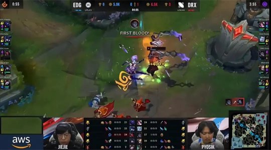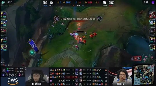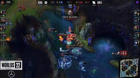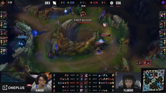 DRX的下路组这一场仍然压制了EDG的“双塔”组合,不过中野成为前期突破口:男枪第一波gank打出塞拉斯的闪现,随后DRX中野入侵EDG的上半野区,塞拉斯惨遭EDG中野包夹送了一血,EDG上中野顺势开打峡谷先锋,千珏牺牲自己抢到了先锋勉强止损。