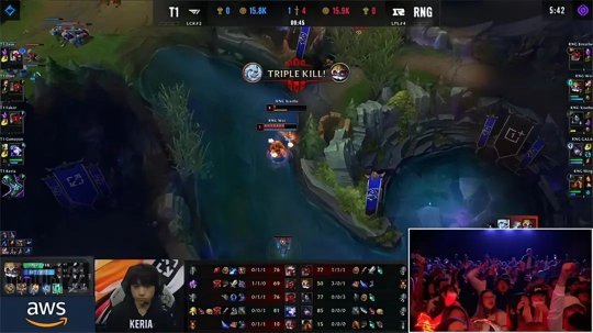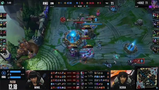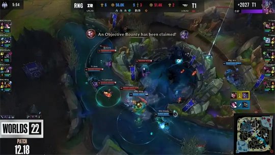 面对T1上中两路兵线的推进,RNG无可奈何尝试中路欠款该大头,虽然阿卡丽和鳄鱼先后进场,但T1且战且退从容应对,不给厄斐琉斯和佛耶戈跟进输出的机会,一波1换3将RNG击溃,顺势推进连破RNG上中两路高地以及下路高地塔,转身再拿到第三条水龙,将经济优势扩大到一万块以上。最后凭借积累下来的巨大优势,T1强势推进拿下第一局比赛胜利,1-0暂时领先。