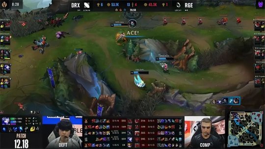 双方互相试探平稳发育到8分半的先锋团战,RGE的上野被DRX上中野三人包夹,沙皇的位置距离太远无法提供支援,眼睁睁看着己方队友被DRX击杀。RGE损兵折将再加上DRX围绕先锋的运营,很快两队就拉开了3千块的经济差距,打野皇子来到下路帮助卡莉丝塔击杀艾希以后自己也被换掉。RGE开始与DRX展开激烈对抗尝试通过打架夺回主动权,但DRX的应对也非常冷静,通过紧密的运营成功滚起雪球,控制资源并且很快把经济领先扩大到6千块左右。