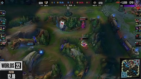 2022英雄联盟全球总决赛小组赛第四天第五场比赛由D组的GEN对阵CFO,作为组内相对实力差距最悬殊的队伍,GEN与CFO出人意料地陷入了混战,GEN早早就取得优势,但始终无法冷静地滚起雪球,而CFO更是失误频频始终抓不住机会,两队你来我往惨烈搏斗了足足40分钟,GEN才终于将CFO拿下,以2胜1负的成绩结束了第一轮比赛。