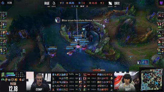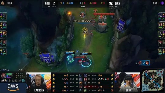 2022英雄联盟全球总决赛小组赛第二日首场比赛,欧洲LEC一号种子RGE战队首秀对阵从入围赛晋级的LCK四号种子DRX,自信选出他们所擅长的中后期团战阵容,凭借严谨的纪律性和堪称完美的团战配合硬生生挡住了DRX的前中期攻势,老将Odoamne的大树成为完美的前排坦克,带领队伍击溃DRX拿下小组赛首胜。