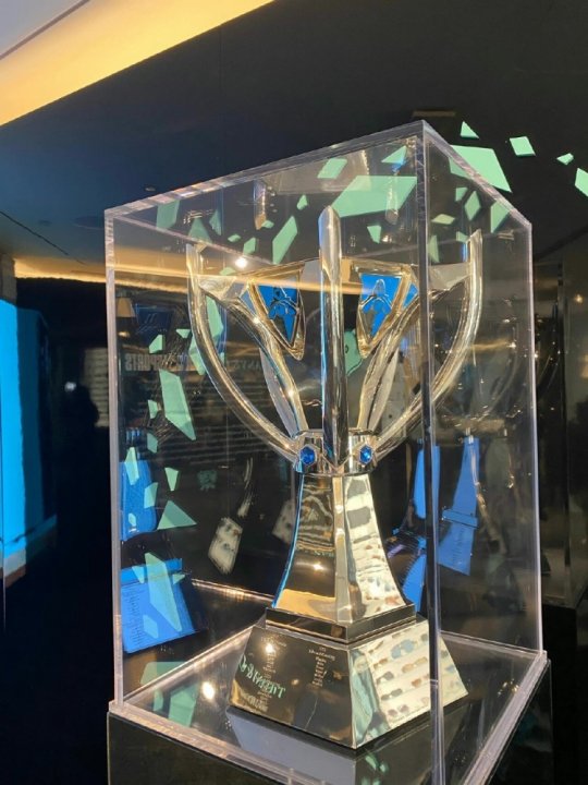 英雄联盟2022全球总决赛小组赛阶段的赛程即将打响,陈列于蒂芙尼总部的冠军奖杯实拍图如下: