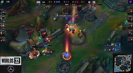 北京时间10月8日早上8点,2022全球总决赛小组赛第一日下半场是LPL赛区的“专场”——LPL小组赛首秀由一号种子JDG对阵北美LCS三号种子EG!虽然JDG下路在对线期不慎炸线,但JDG上中野站了出来,帮助队伍稳住了节奏,最终JDG有惊无险战胜EG,而北美赛区在小组赛第一日苦吞三连败。