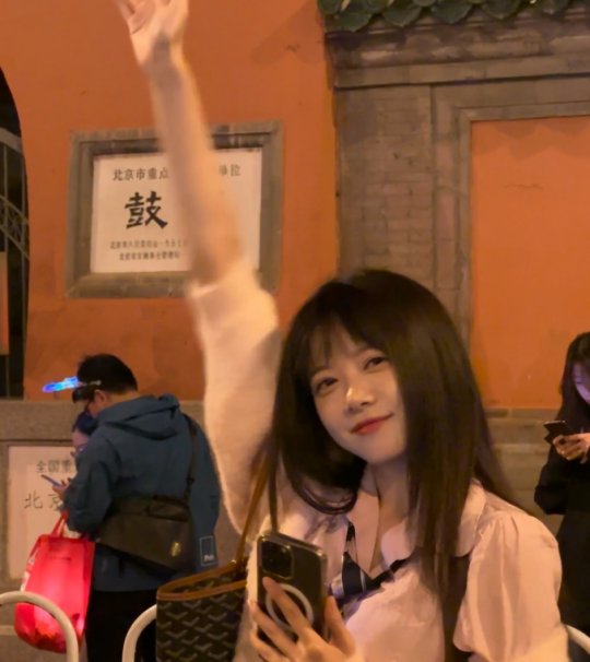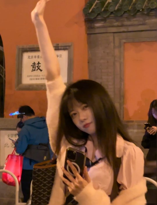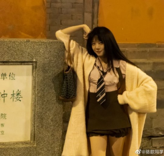 主持骆歆前往鼓楼旅游 可爱短裙尽显俏皮