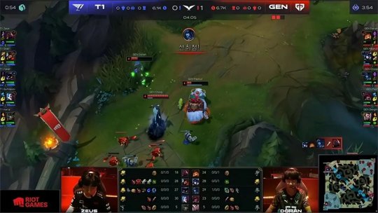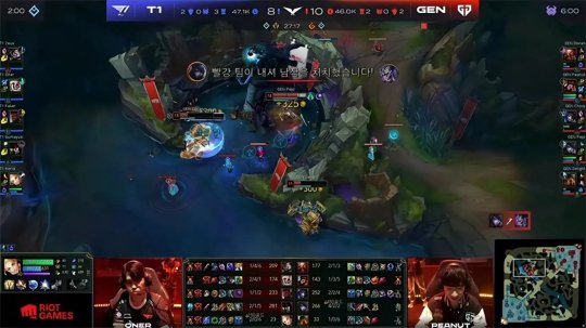 36分钟GEN拿下风龙魂,走投无路的T1只能最后Rush大龙豪赌一波,这次GEN不给任何机会,猴子突入龙坑抢走大龙,T1的阵型土崩瓦解四散奔逃被GEN挨个斩杀最终阵亡四人。GEN从上路推进高地长驱直入,把复活的T1队员再次斩杀以后结束了比赛,恭喜GEN先拔头筹,1-0暂时领先!