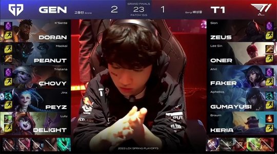 虽然厄斐琉斯的高光表现帮助T1在绝境之中守住基地,但GEN仍然拥有绝对优势,冠军就在眼前他们没有再次犯错,稳步抱团从上路推进高地,高地塔毁灭瞬间大树和奎桑提联手控到三人,T1防线瞬间爆炸土崩瓦解,GEN摧枯拉朽终结比赛,以3-1的总比分掀翻T1实现卫冕,恭喜GEN夺得2023LCK春季赛总冠军!