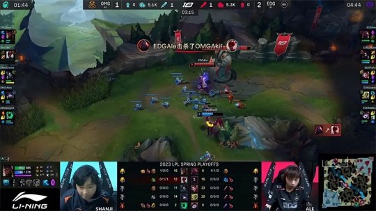 2023 LPL春季赛季后赛四强双败赛第一轮第二场对决,以常规赛第六身份一路黑马逆袭杀入四强的OMG战队即将迎来季后赛至今最为强大的对手EDG战队,两队都是历史渊源颇深的LPL老牌战队,如今在赛场相遇即将争夺晋级胜者组决赛的机会。而败者则将与BLG战队展开生死局较量。双方的硬实力与中期运营能力有所差距,但OMG强悍的团战操纵硬生生在第一局翻盘击败EDG先夺一分,EDG迅速冷静下来调整战术,开始主打下半区阻断OMG引以为豪的控龙打法,成功限制了OMG下路的发挥,最终实现让一追三,3-1战胜OMG挺进胜者组决赛。EDG将与JDG争夺第一张通往春季总决赛的门票。